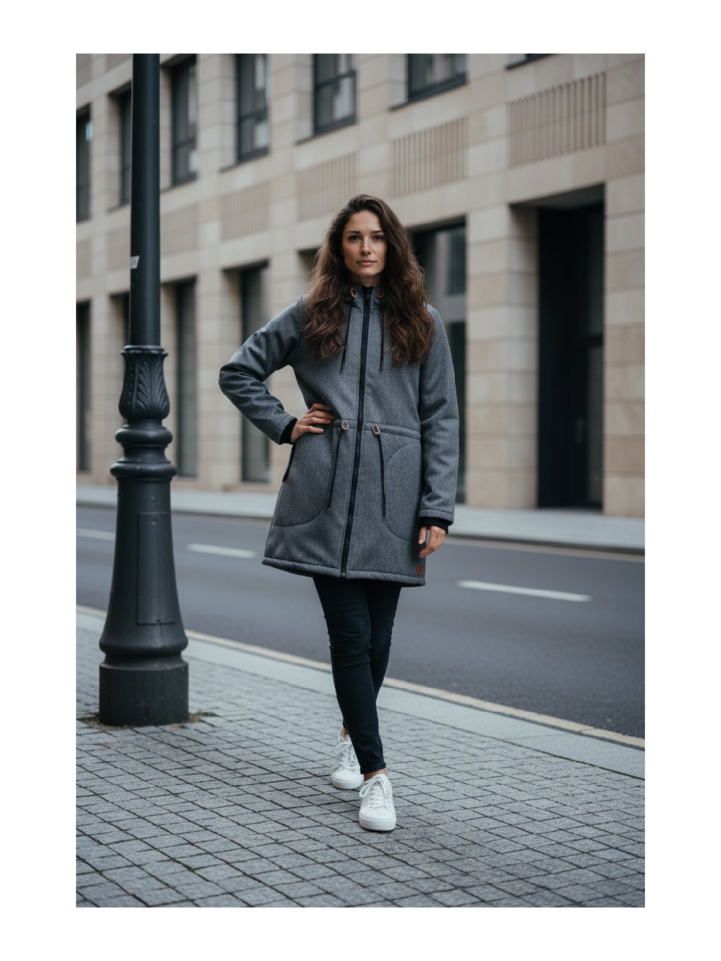 Dámská softshellová parka vzor rybí kost