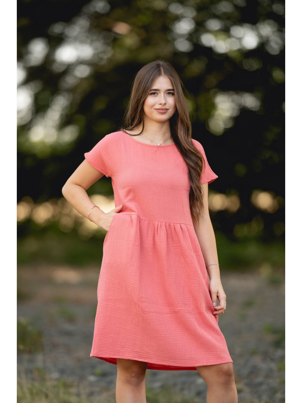 Šaty Marcela korálová mušelín