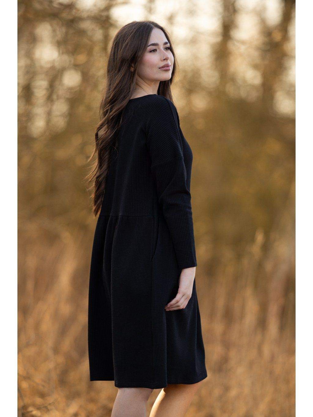 Šaty Marcela wafle černá - výběr rukávu