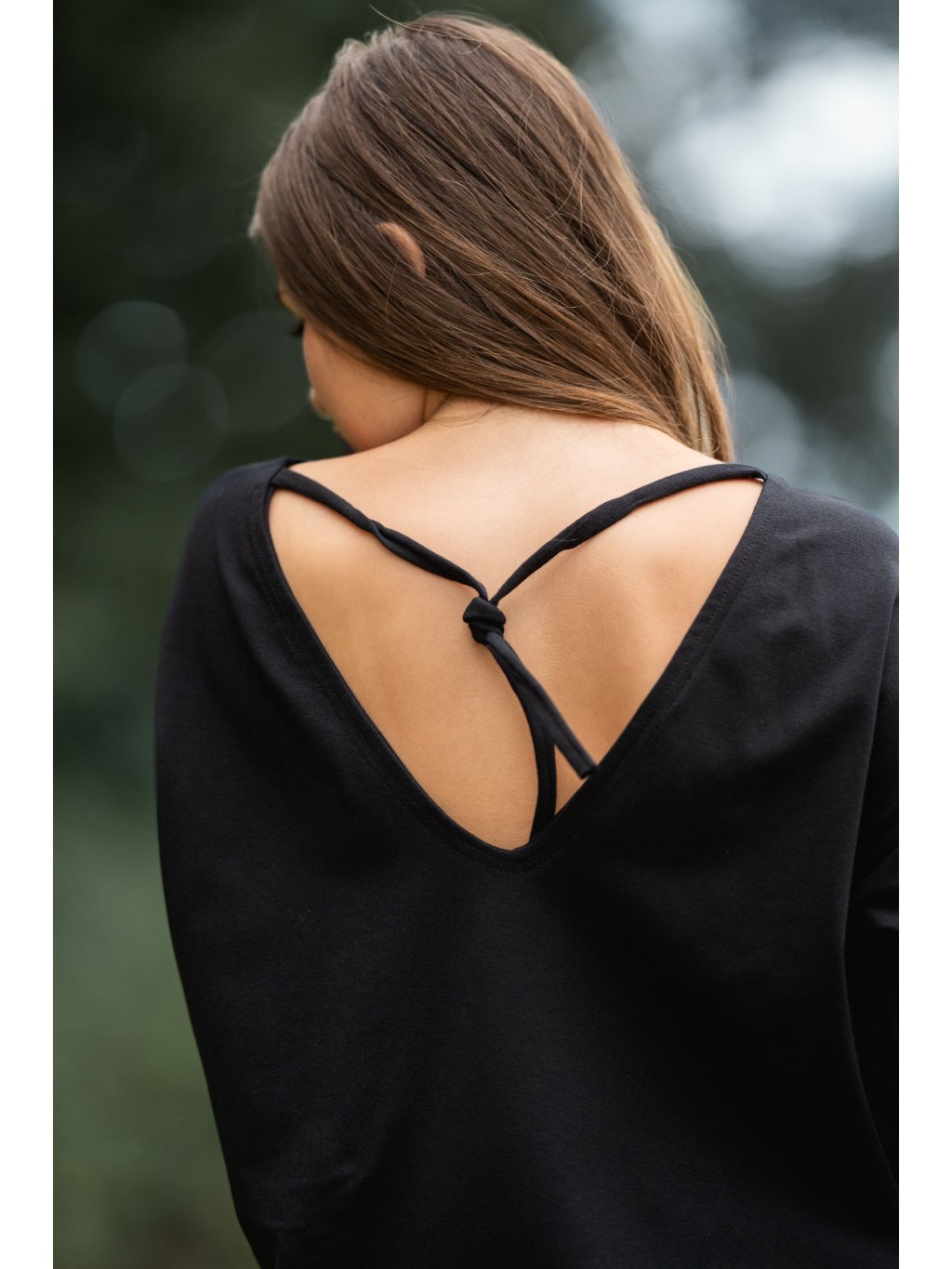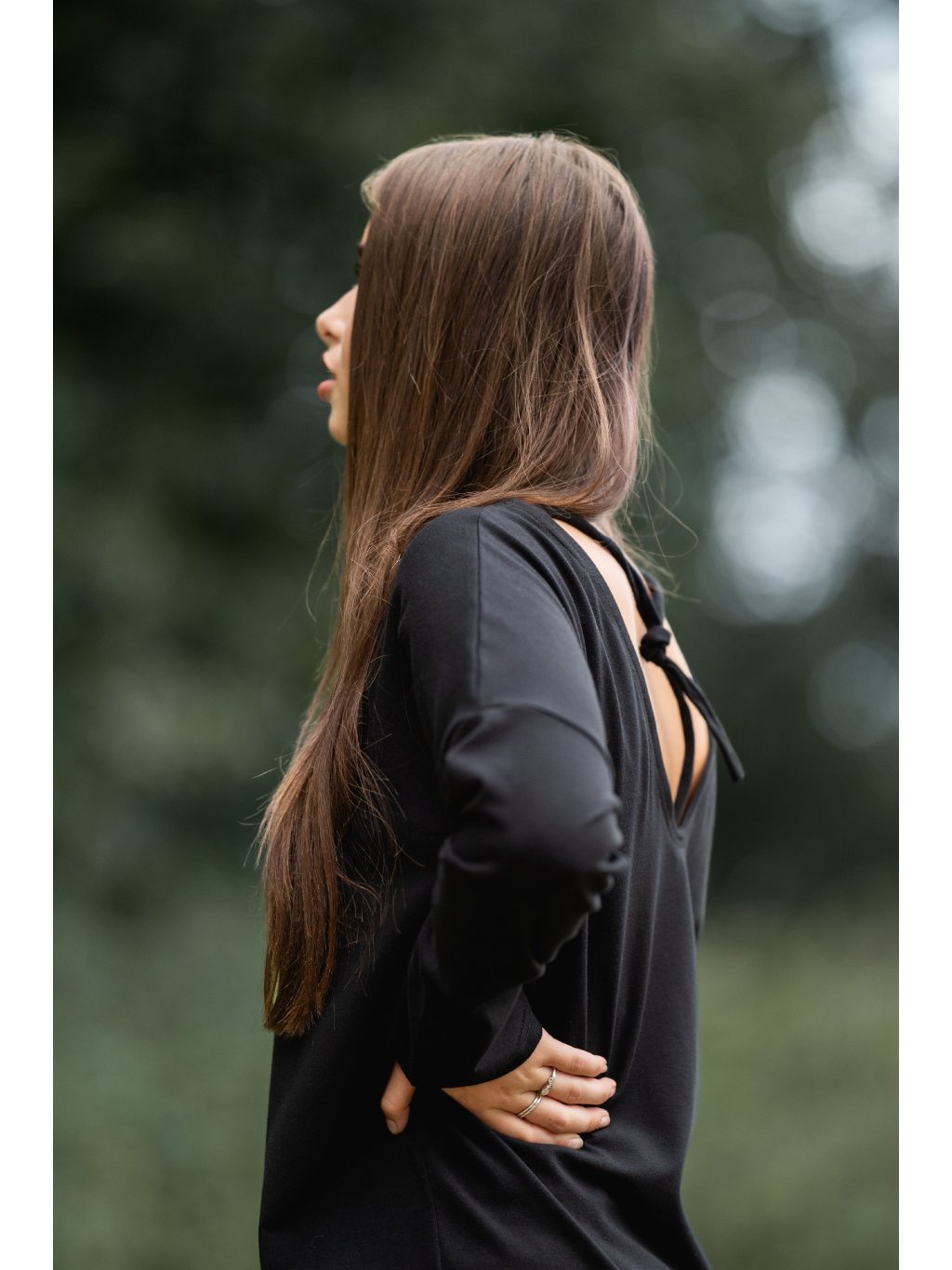 - nahoře volnější s velkým V výstřihem na zádech, abyste se v létě nepotila a vazačkou, aby šaty nepadaly