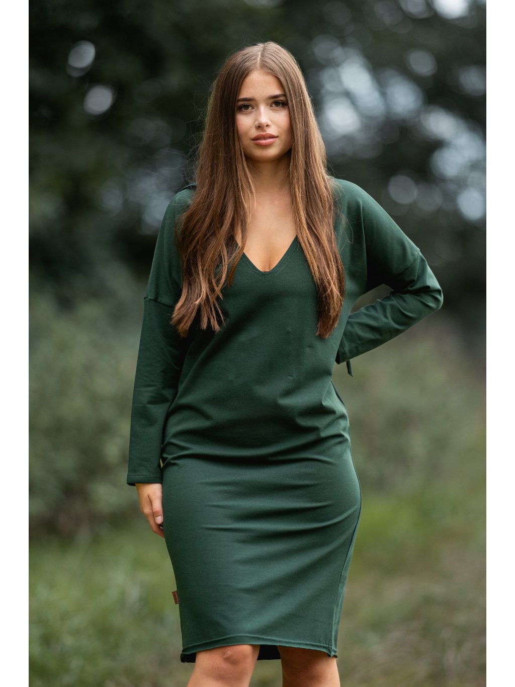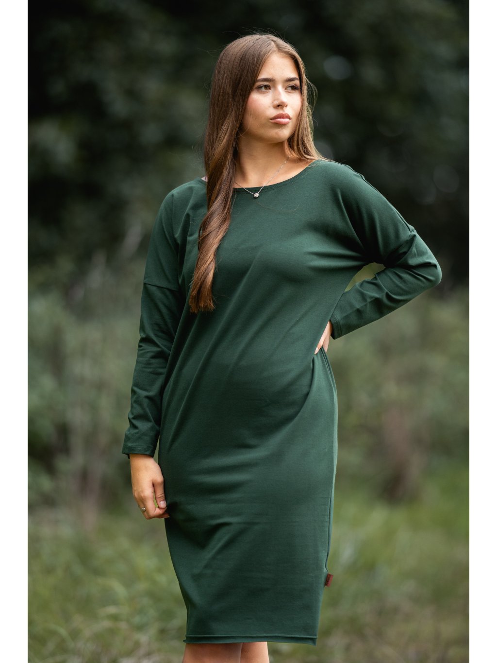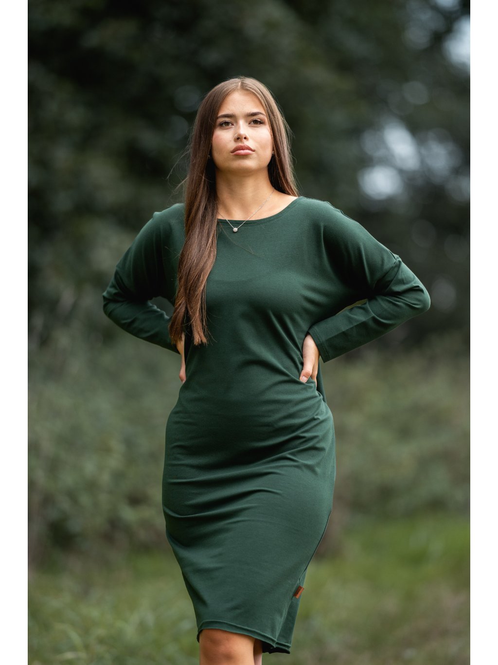 Šaty Samanta dlouhý rukáv lahvově zelené
