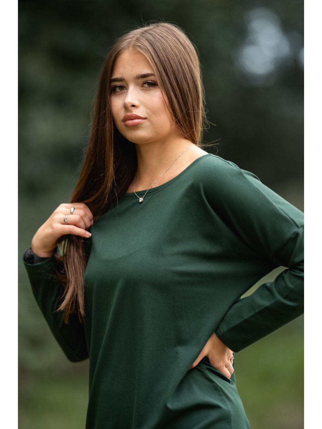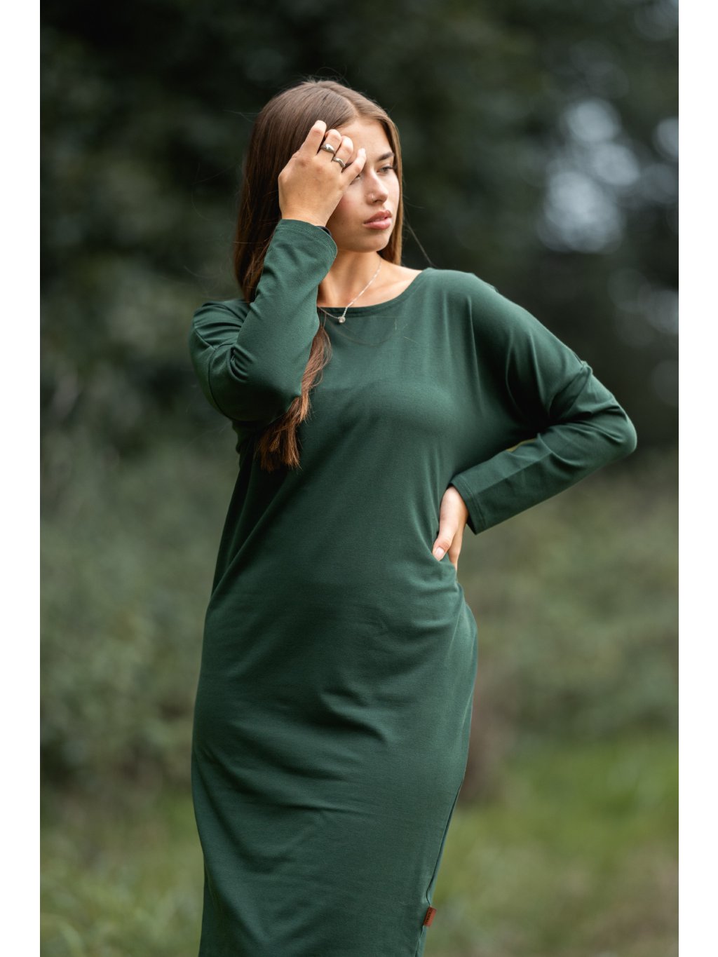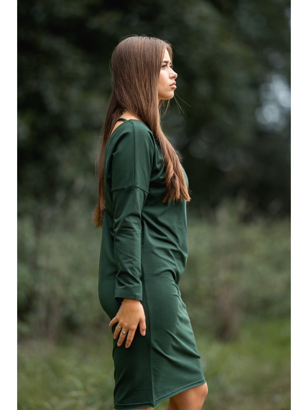 Šaty Samanta dlouhý rukáv lahvově zelené