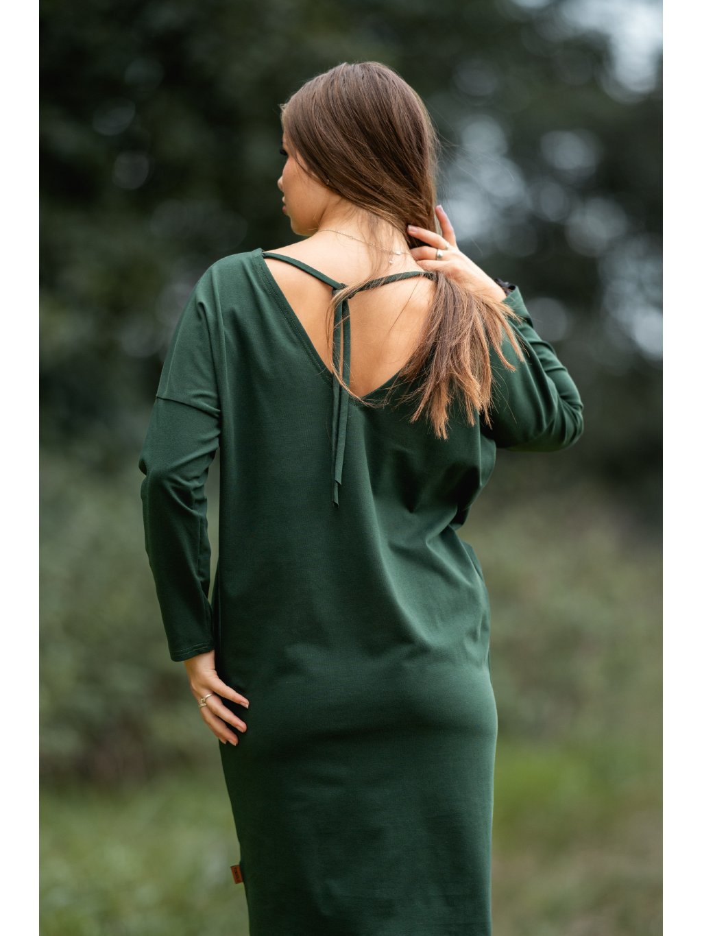 - Šaty lze nosit i výstřihem dopředu