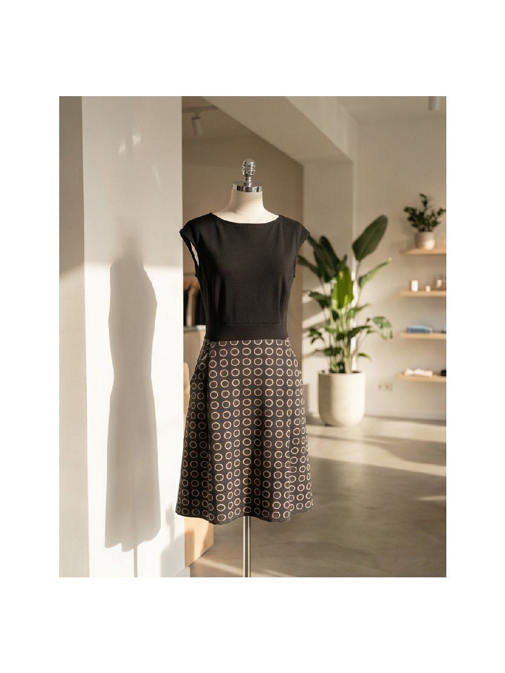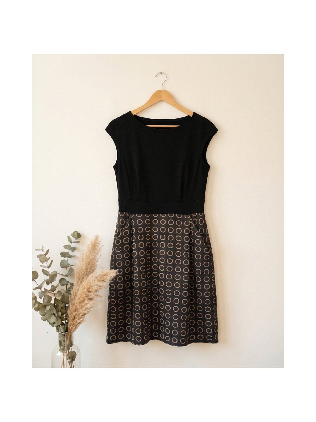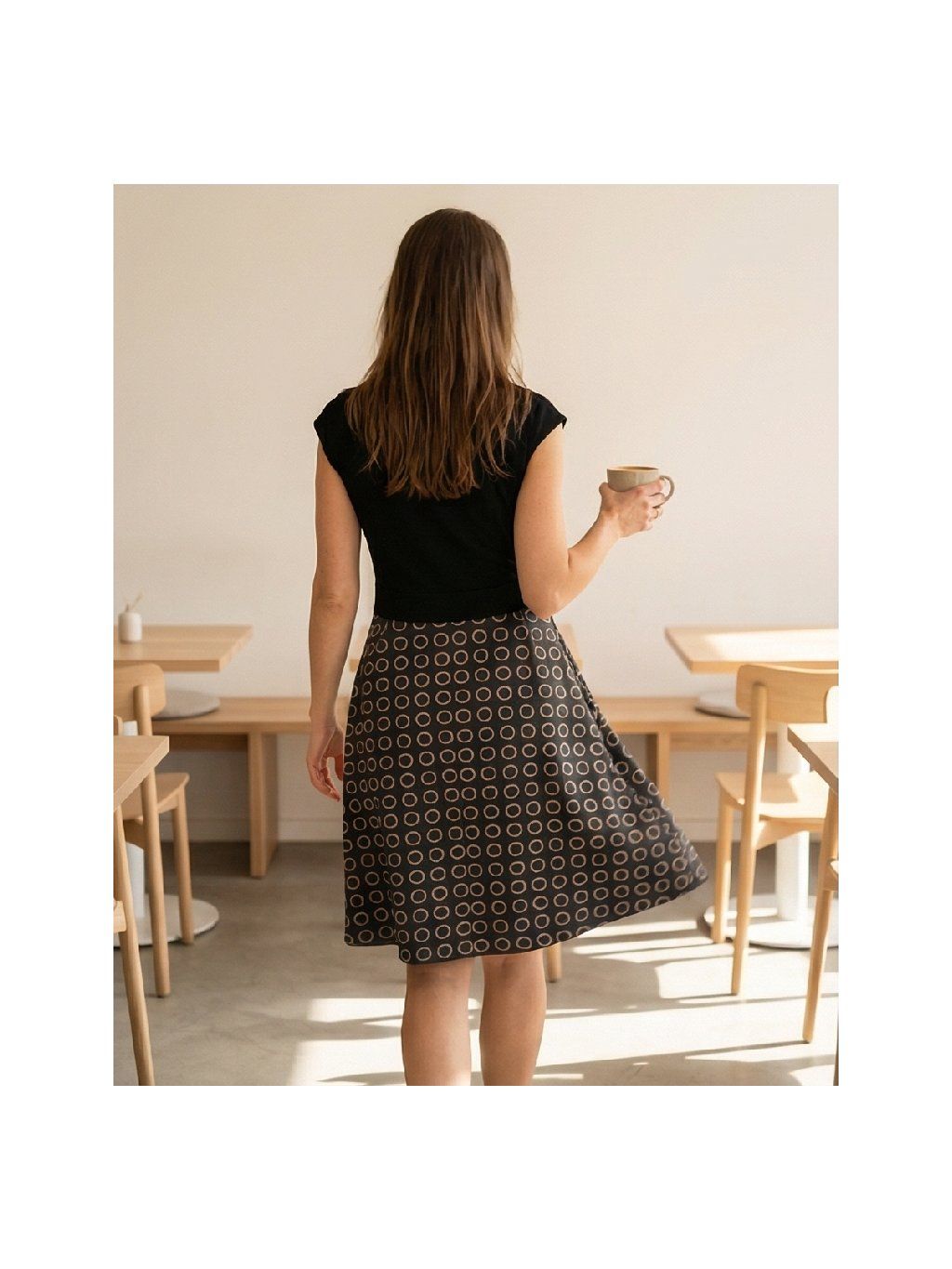 - Vzorovaný materiál na sukni je měkký, nekrčivý materiál ideální na jaro/léto