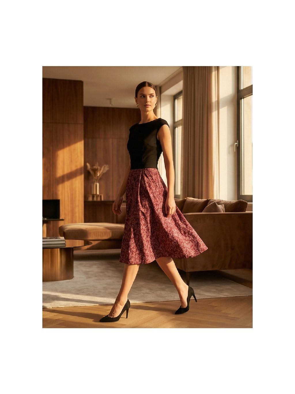 - Vzorovaný materiál na sukni je měkký, nekrčivý materiál ideální na jaro/léto