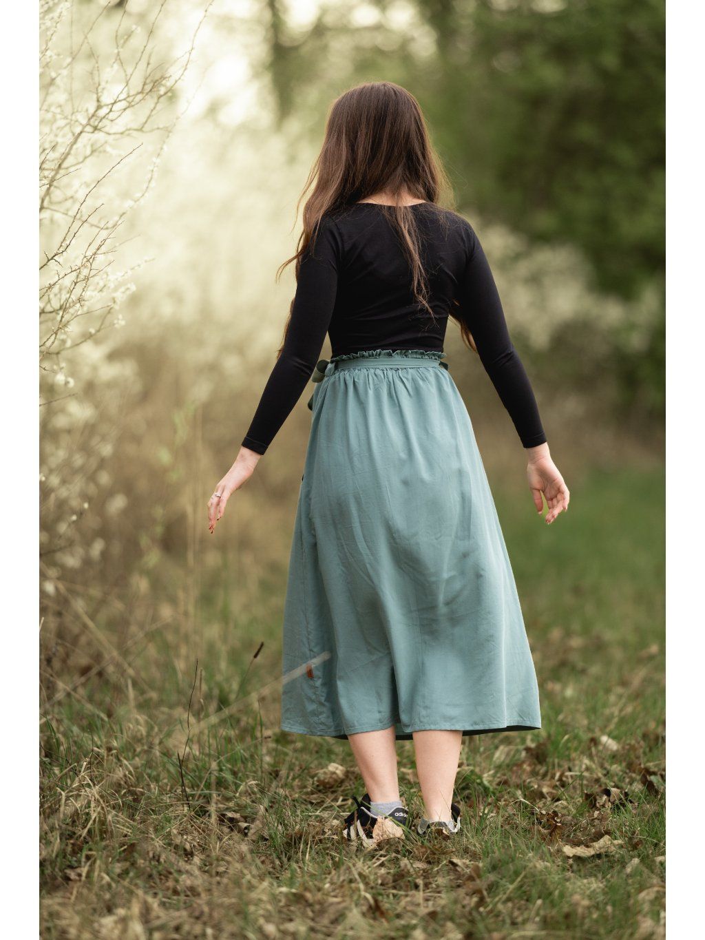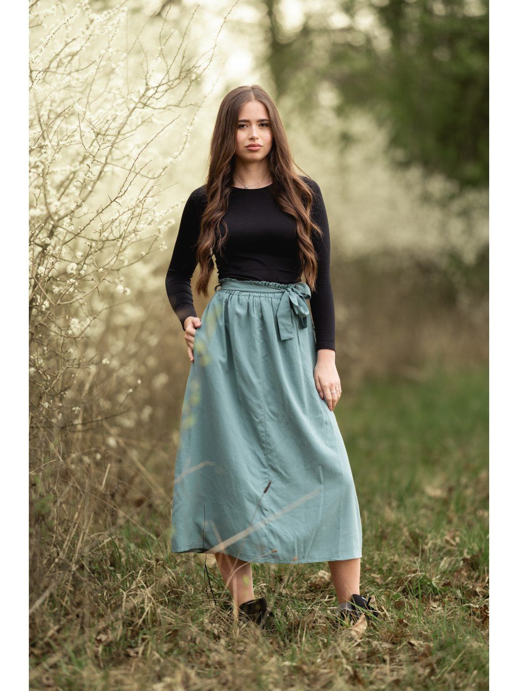 - Sukně je v pase na gumu s okrasným lemem, který dodá na dokonalosti.